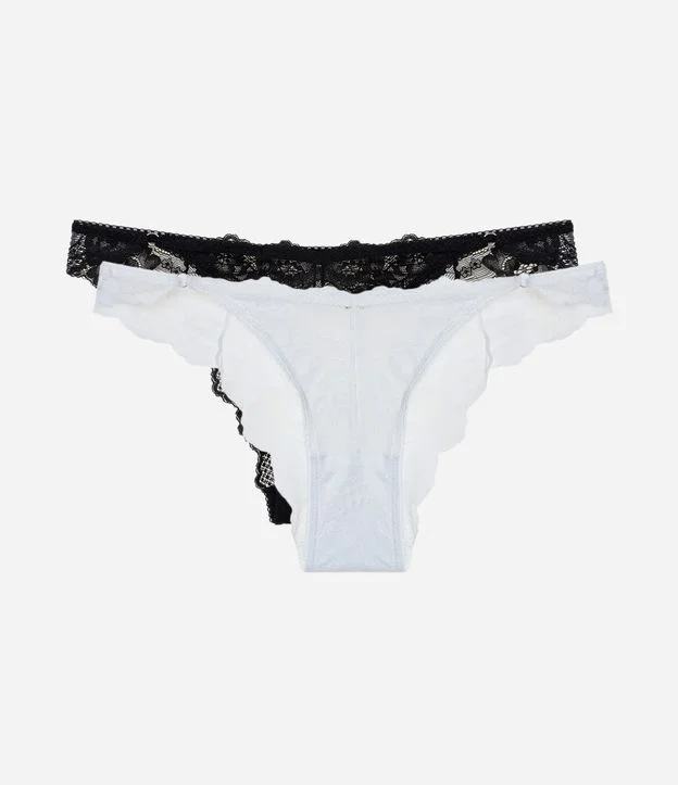 Kit 02 Calcinhas Biquíni em Renda Floral Branco/Preto