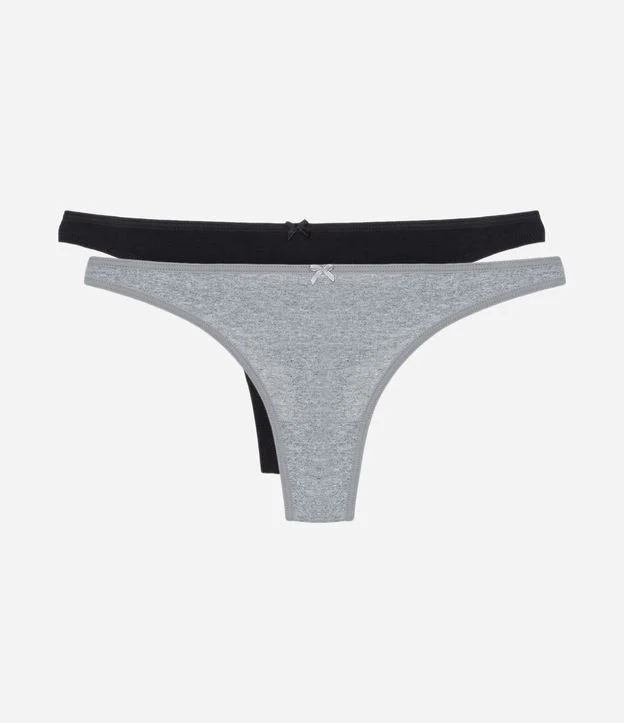 Kit 02 Calcinhas Biquíni Fio Básicas em Algodão Preto/Cinza