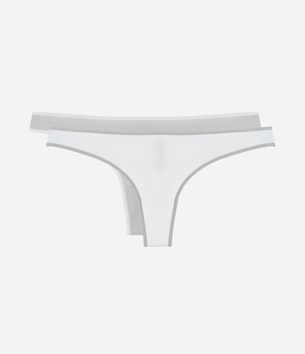 Kit 02 Calcinhas Biquini Fio com Viés Contrastantes Branco/Cinza