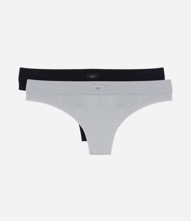 Kit 02 Calcinhas Biquíni Fio Comfy Seamless Texturizada com Etiqueta LOV Preto/Cinza
