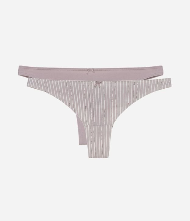 Kit com 02 calcinhas biquíni fio duplo feminino, confeccionadas em algodão, com lateral média, lacinho no cós e estampa listrada.