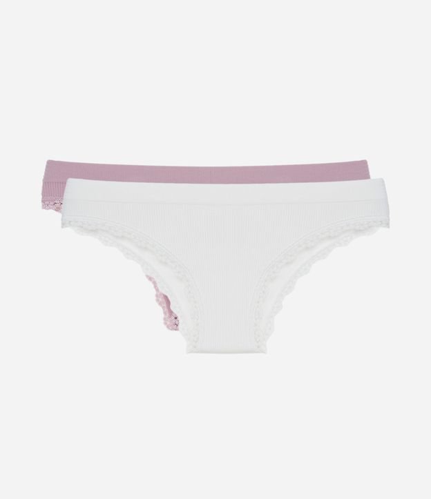Kit 02 Calcinhas Biquini Sem Costura com Detalhe em Renda Branco/Rosa