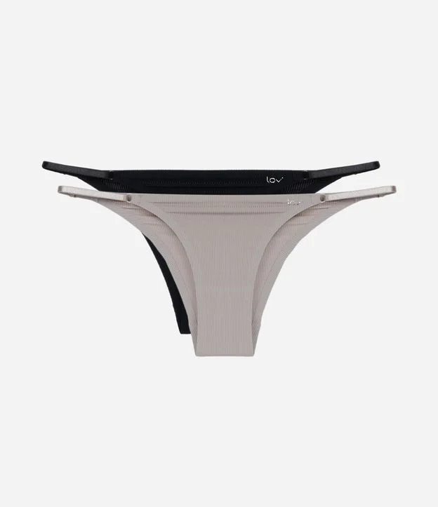 Kit 02 Calcinhas String em Microfibra Texturizada Cinza/Preto