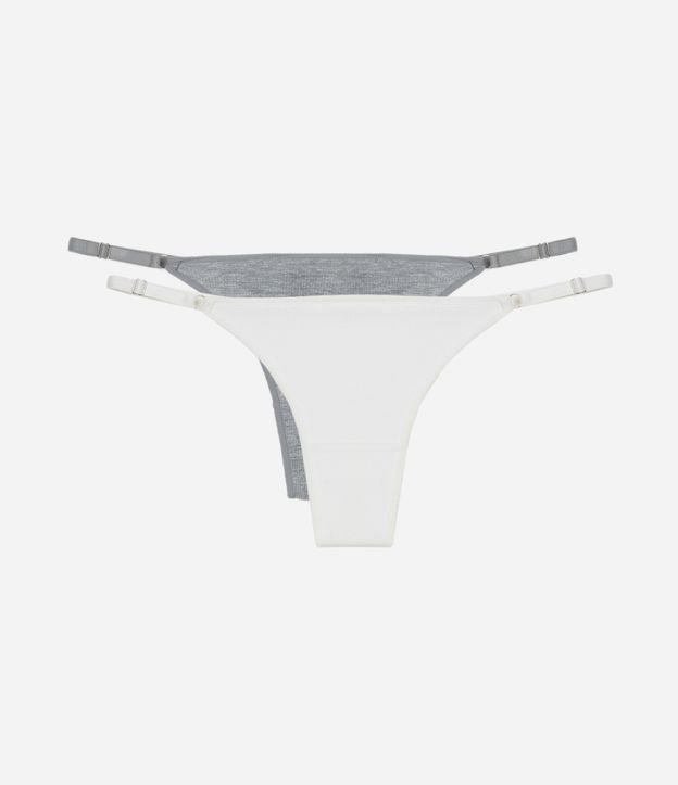 Kit 02 Calcinhas String Fio com Laterais Finas Branco/Cinza