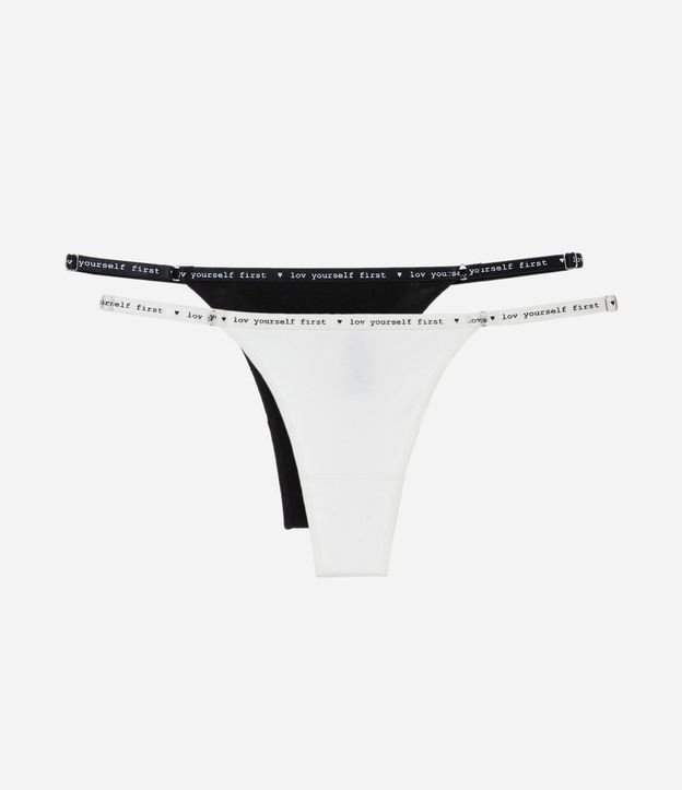 Kit 02 Calcinhas String Fio Duplo com Lettering no Cós Branco/Preto