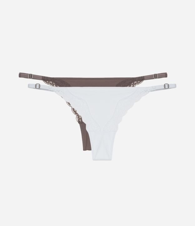 Kit 02 Calcinhas String Fio em Microfibra com Renda Branco/Marrom Acinzentado