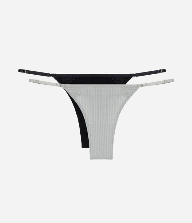 Kit 02 Calcinhas String Fio em Viscose Cinza/Preto