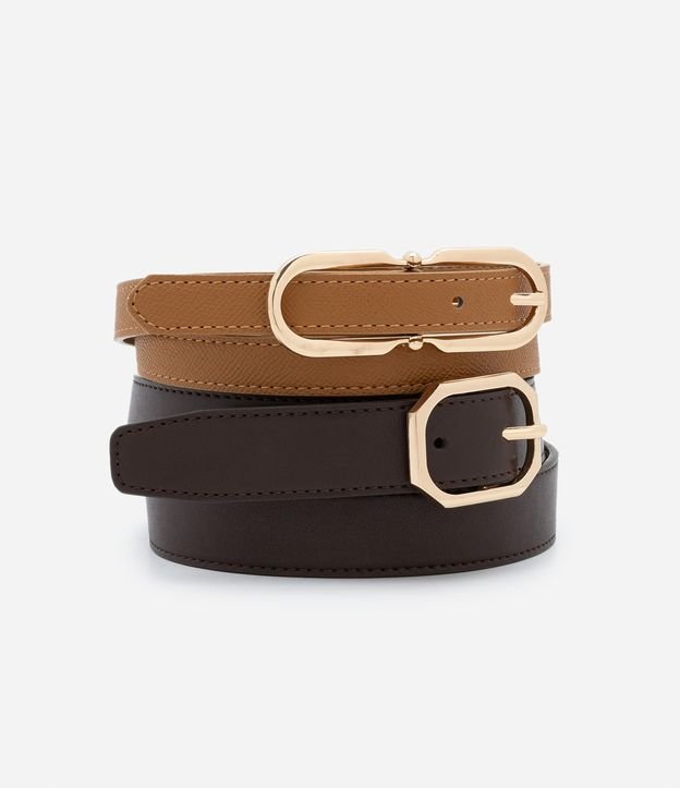 Kit 02 Cintos em PU com Fivelas Diferenciadas