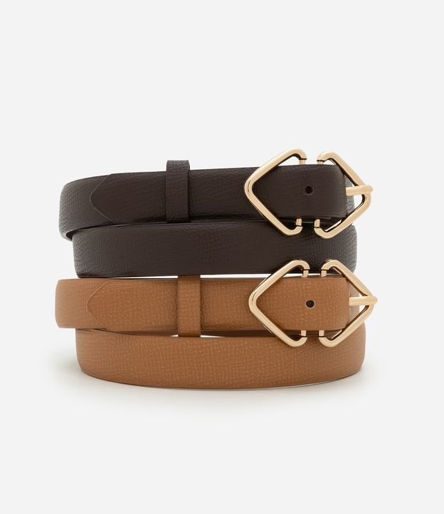 Kit 02 Cintos em Pu com Fivelas Triangulares Preto/Marrom