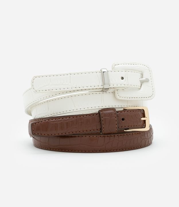 Kit 02 Cintos Médios em PU Efeito Croco com Fivela Forrada e com Metal