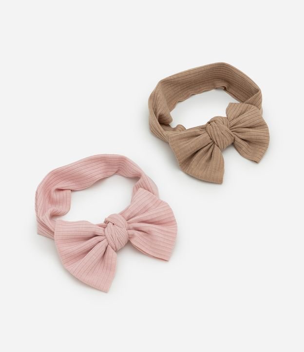 Kit 02 Faixas de Cabelo Caneladas com Laço – Tam U Rosa/Marrom
