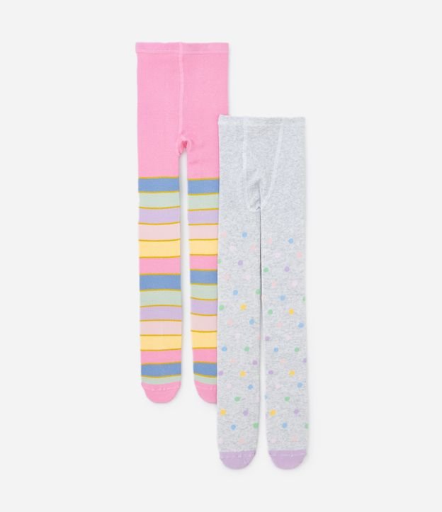 Kit 02 Meias Calças Infantis com Listras e Bolinhas - Tam P ao G