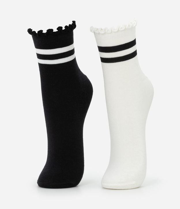 Kit 02 Meias Cano Médio em Algodão com Listras e Frufru