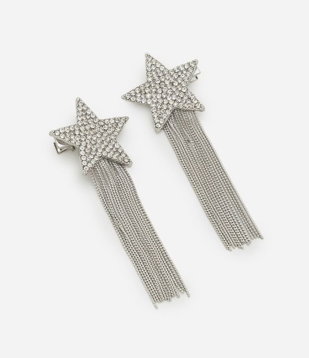 Kit 02 Presilhas de Cabelo com Estrela em Strass e Franjas Prata