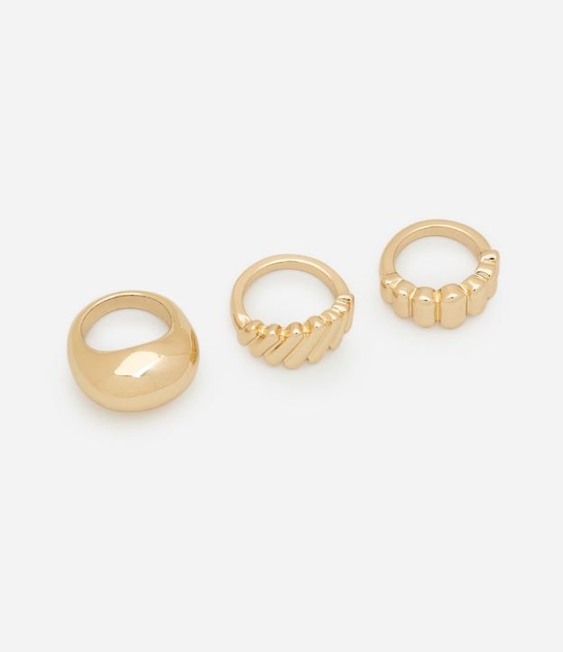 Kit 03 Anéis em Metal Diversos Dourado