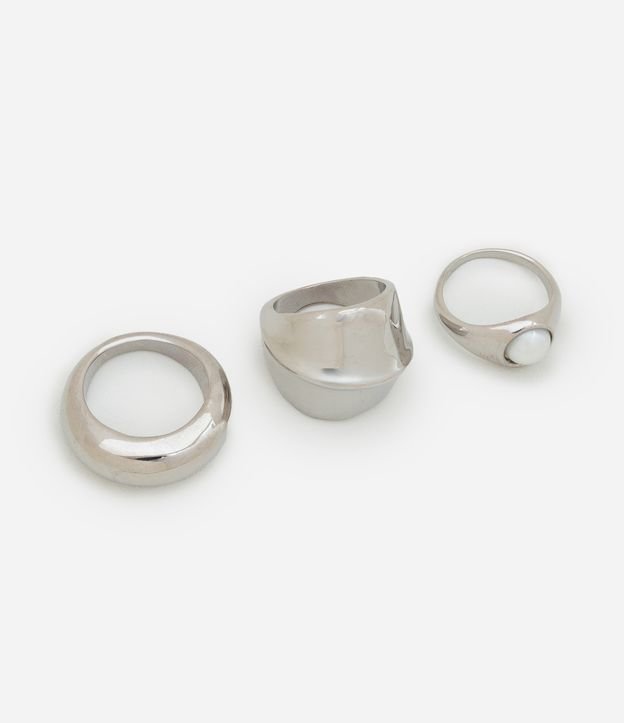 Kit 03 Anéis Perola com Formato Bold e Pérola Aplicada