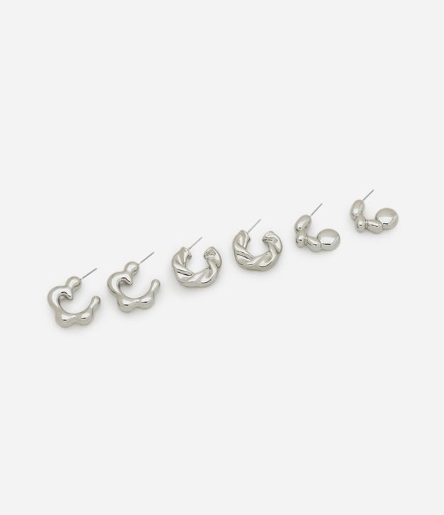 Kit 03 Argolas em Metal com Formas e Texturas Diferentes Prata