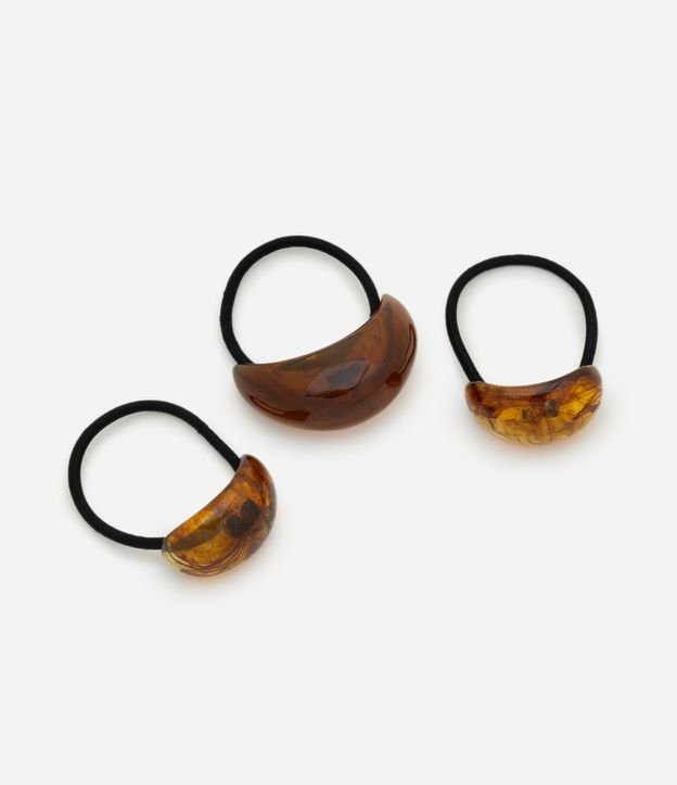 Kit 03 Borrachinhas de Cabelo em Resina com Aviamento Marrom
