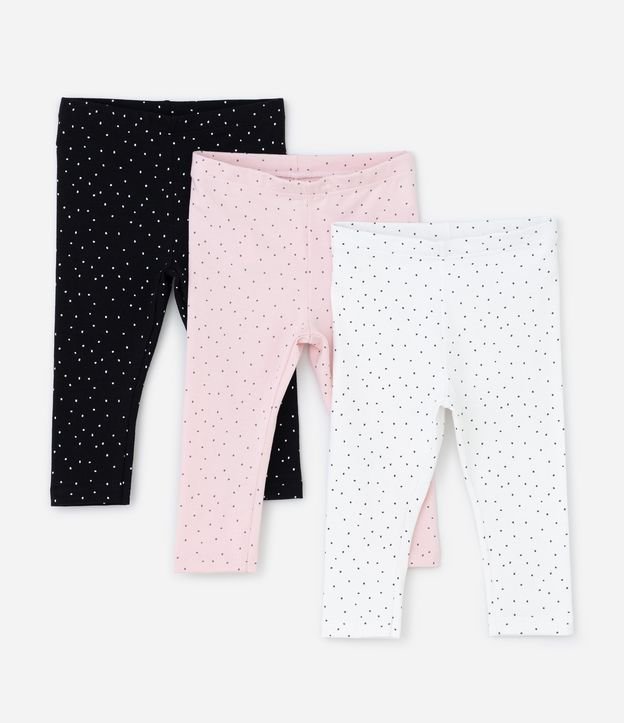 Kit 03 Calças Leggings Infantis com Estampa Poá- Tam RN a 18 Meses