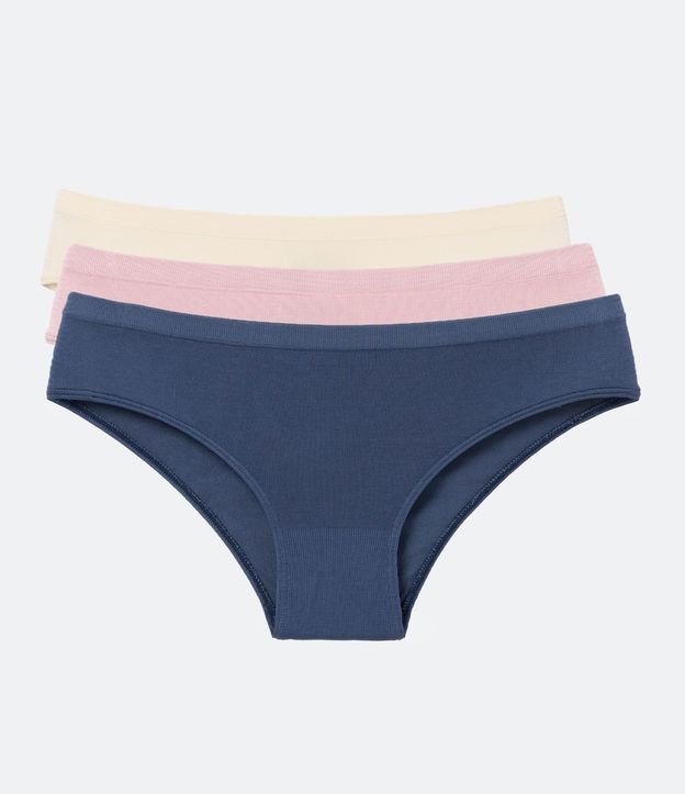 Kit 03 Calcinhas Biquíni Sem Costura DelRio Azul/Rosa/Amarelo