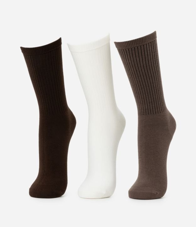 Kit 03 Meia Cano Alto em Algodão Canelado Lupo Marrom/Branco/Preto