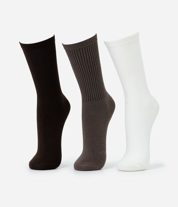 Kit com 03 pares de meia confeccionado em algodão mais sustentável. Possui modelo cano alto, textura canelada e básicas.