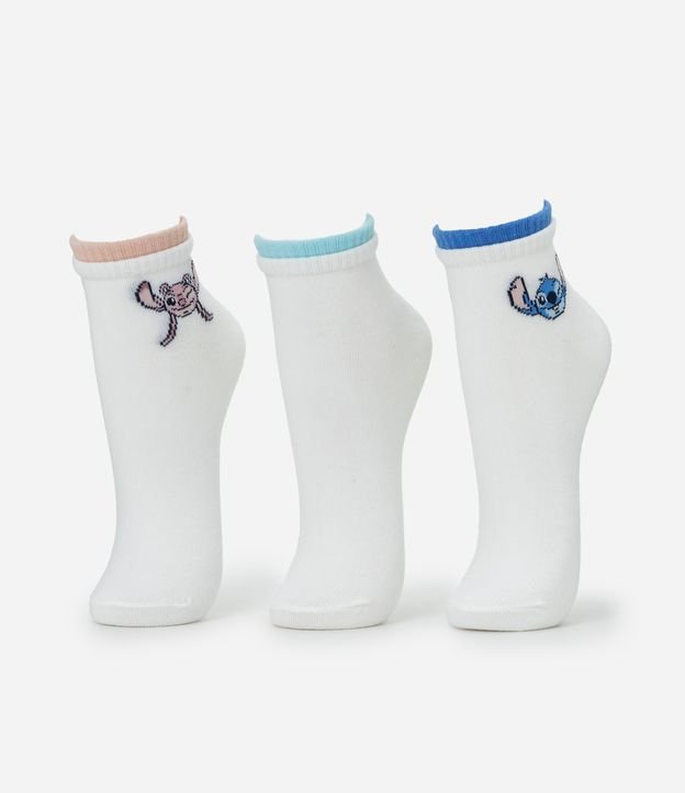 Kit 03 Meias Cano Baixo em Algodão Stitch e Angel Branco