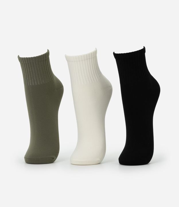 Kit 03 Meias Cano Médio Esportiva em Poliamida com Lettering Verde/Off White/Preto