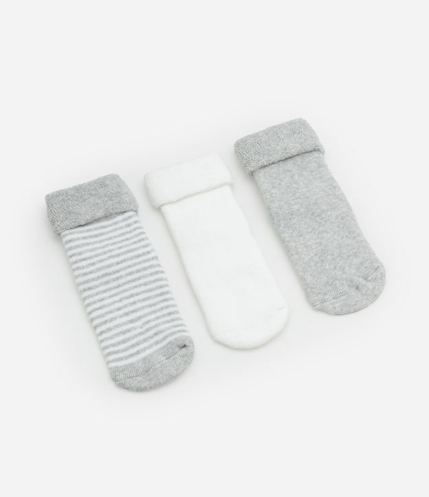 Kit 03 Meias Infantis Básicas com Barra Dobrada e Antiderrapante - Tam RN a 12 meses
