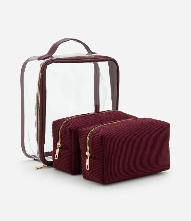 Kit 03 Nécessaires com Alça de Mão e Texturizadas Vinho