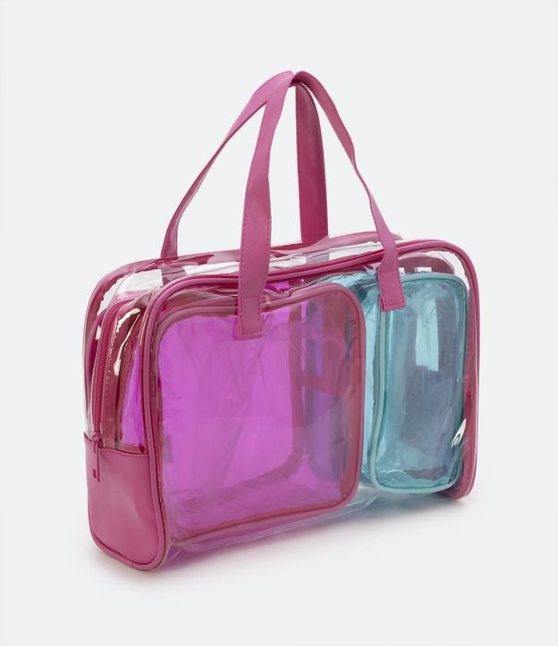 Kit 03 Nécessaires em Plástico com Transparência e Alças