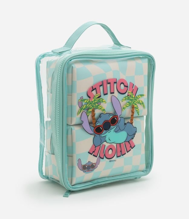 Kit composto por uma nécessaire grande transparente com alça de mão e duas médias retangulares com estampa Stitch Playa.