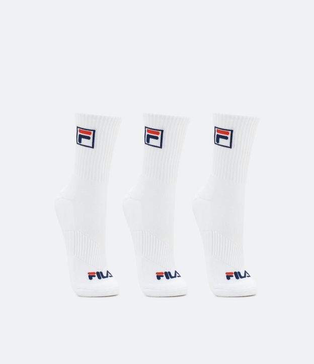 Kit 03 Pares de Meia Cano Alto em Algodão Canelado com Logo Fila