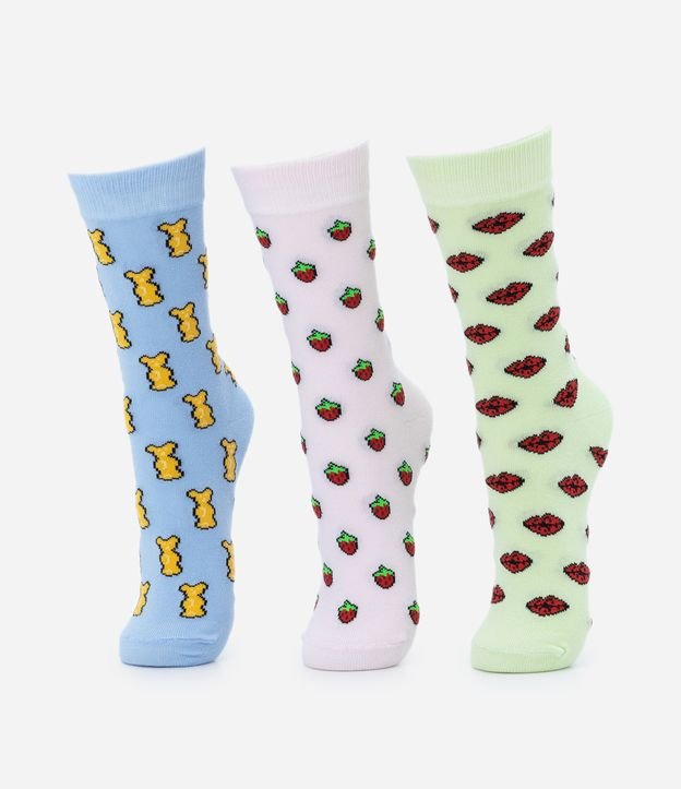 Kit 03 Pares de Meia Cano Alto em Algodão com Estampas Divertidas