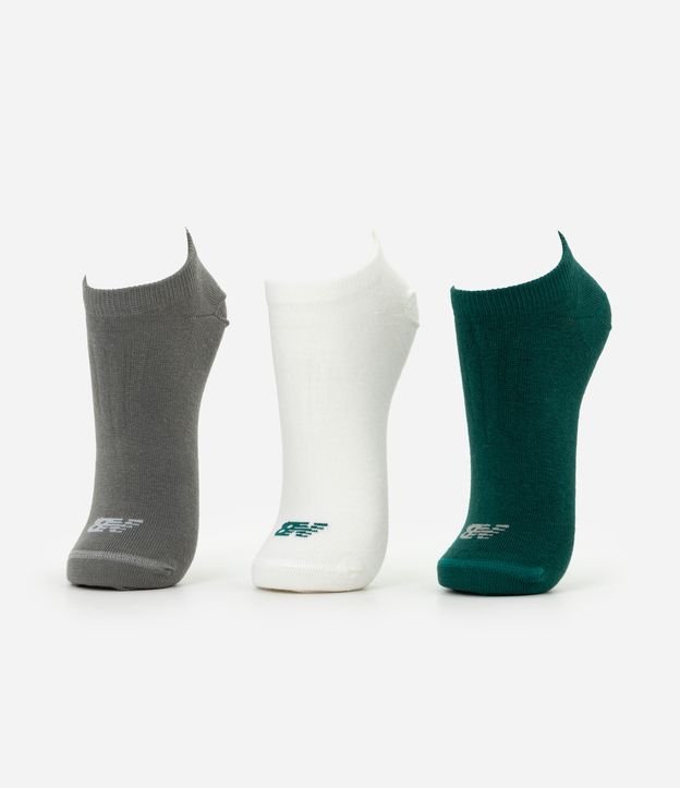 Kit 03 Pares de Meias com Cano Curto Estampa New Balance Verde/Cinza/Branco