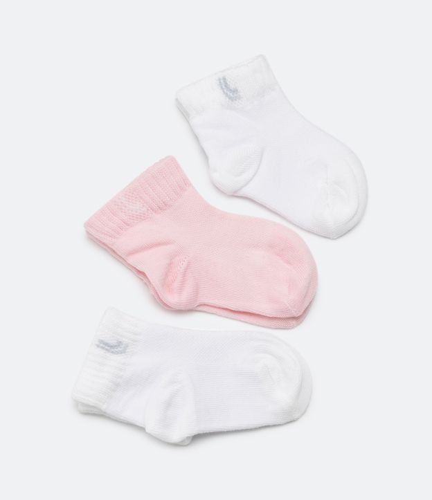 • Kit 03 Pares de Meias Infantil Lupo com Cano Médio - Tam 16 a 23 Branco/Rosa 1