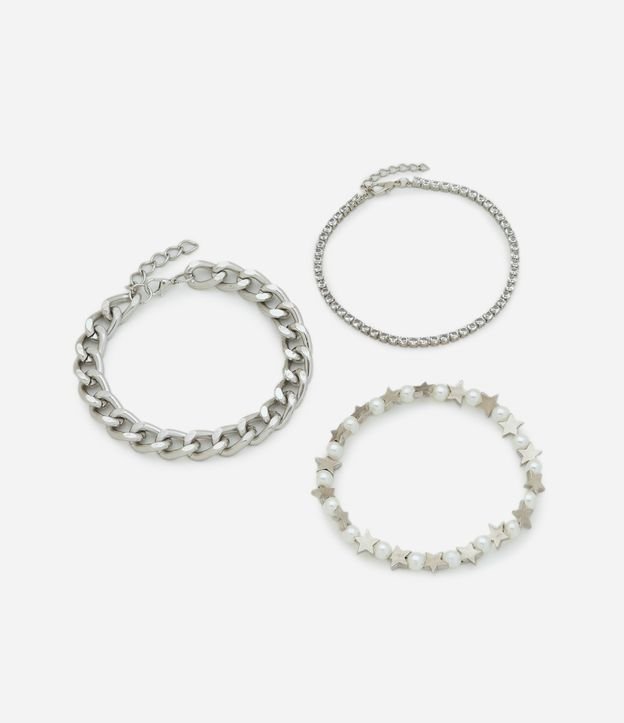 Kit 03 Pulseiras Metalizadas com Diferentes Texturas Prata