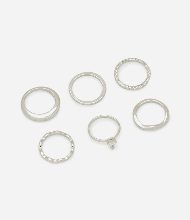 Kit 06 Anéis Delicados com Texturas Variadas Prata