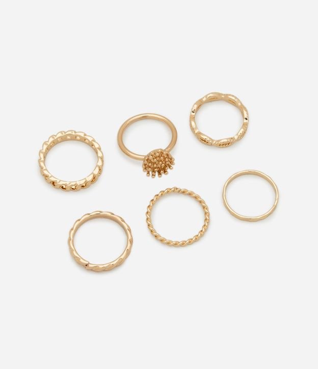Kit 06 Anéis Delicados em Metal Texturizado Dourado