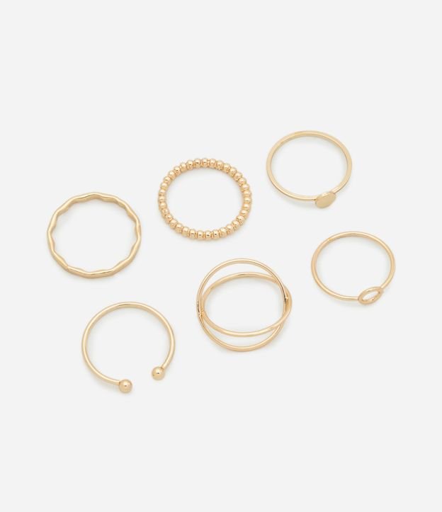 Kit 06 Anéis em Metal com Formatos Delicados e Diversos Dourado
