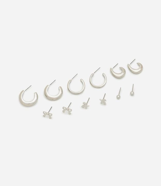 Conjunto de 06 brincos composto por 03 argolas diversas e um brinco forma de estrela, uma bolinha e um laço. Produto confeccionado em metal reciclado.