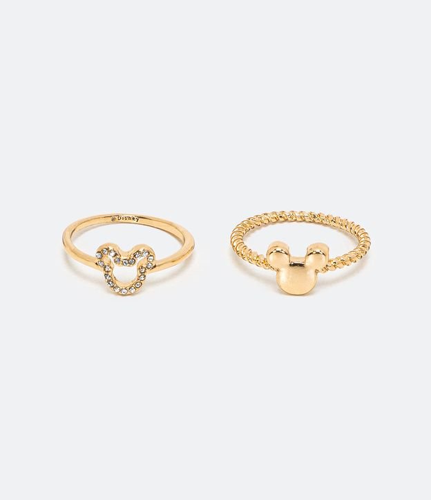 Kit 2 Anéis em Metal com Contorno Mickey em Strass