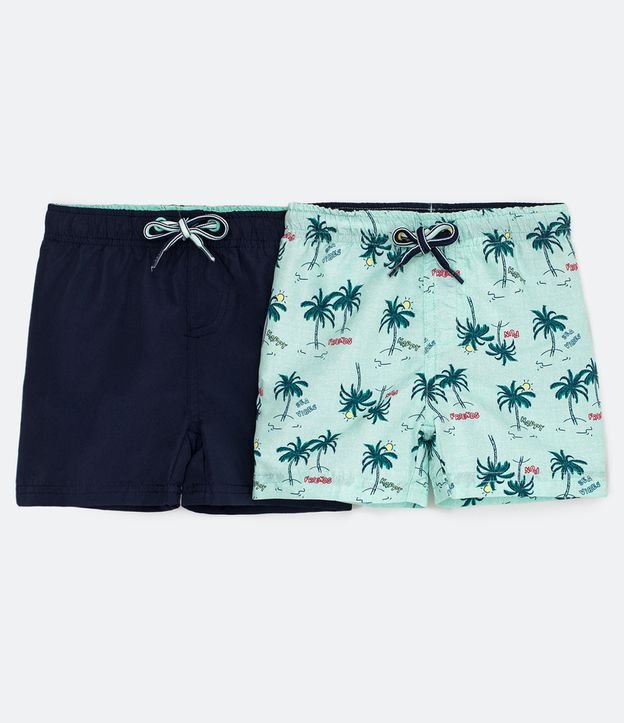 Kit 2 Bermudas de Banho Infantis Estampada e Lisa - Tam 0 a 18 meses