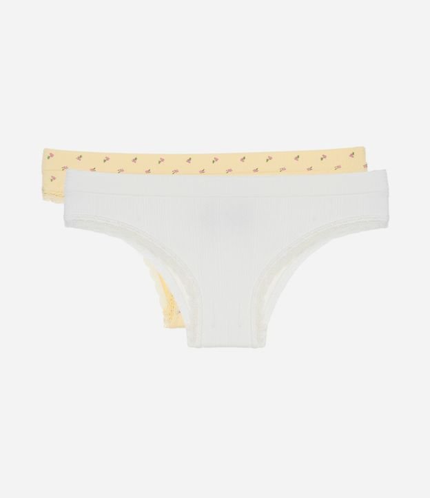 Kit 2 Calcinhas Biquíni Sem Costura com Estampa Floral Branco/Amarelo