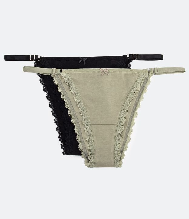 Kit 2 Calcinhas String em Algodão com Renda nas Cavas