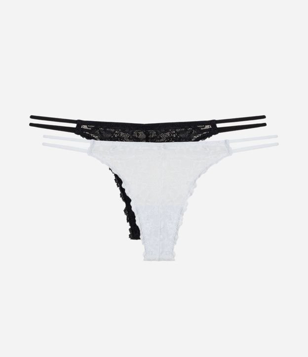 Kit 2 Calcinhas String Fio em Renda Floral Branca e Preta