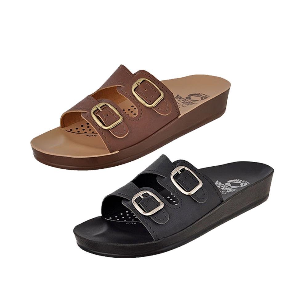 Kit 2 Sandália Ortopédica Feminina Anatômica Conforto Leve Marrom/Preto
