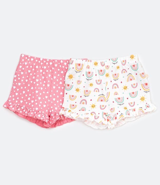 Kit 2 Short Infantil Estampa de Corações e Arco-íris - Tam 0 a 18 meses