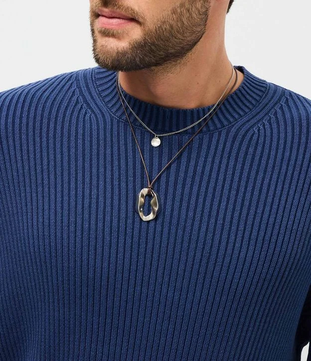 Kit 2x1 Colar Metal com Pedra Orgânica e Pingente em Metal Prata