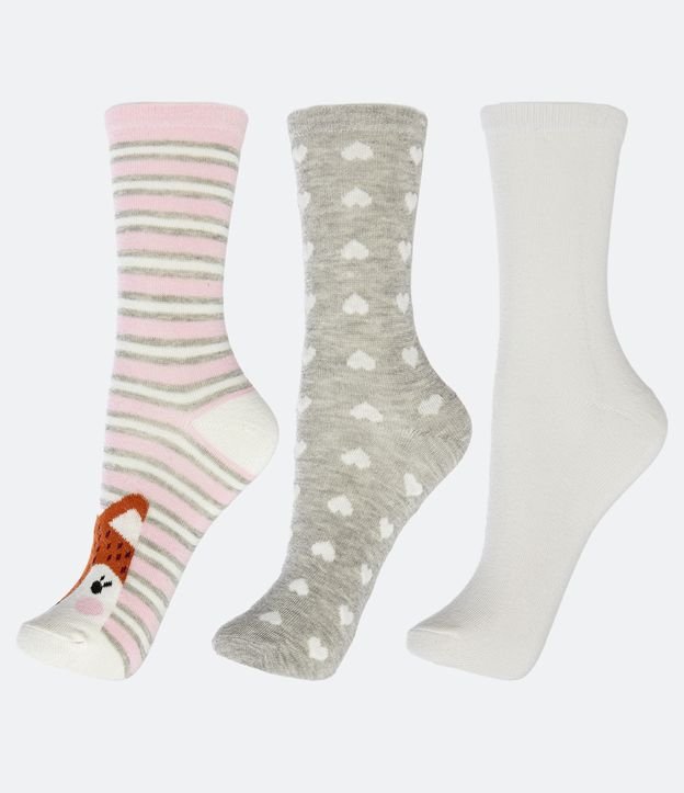Kit 3 Meias em Algodão com Estampa Raposa e Corações
